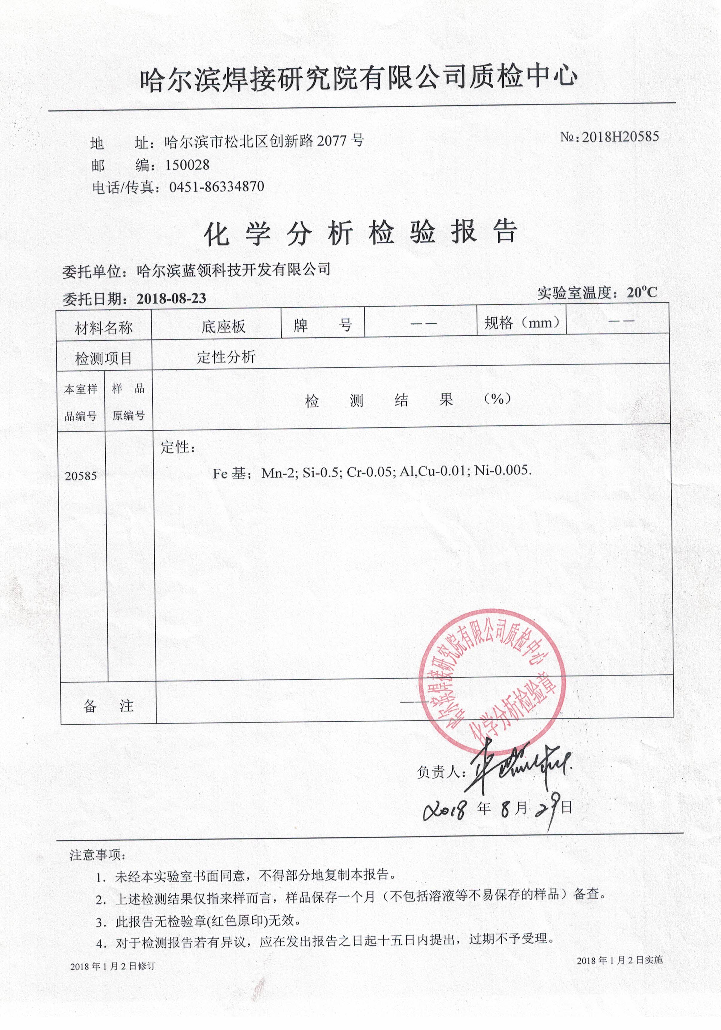 分析检验报告